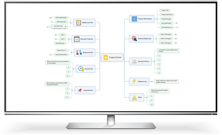 无论您想要做什么 — 头脑风暴、策划一个项目、设计时间表、概述一个策略 — MindManager内置的思维导图或图表模板让您轻松开始工作。